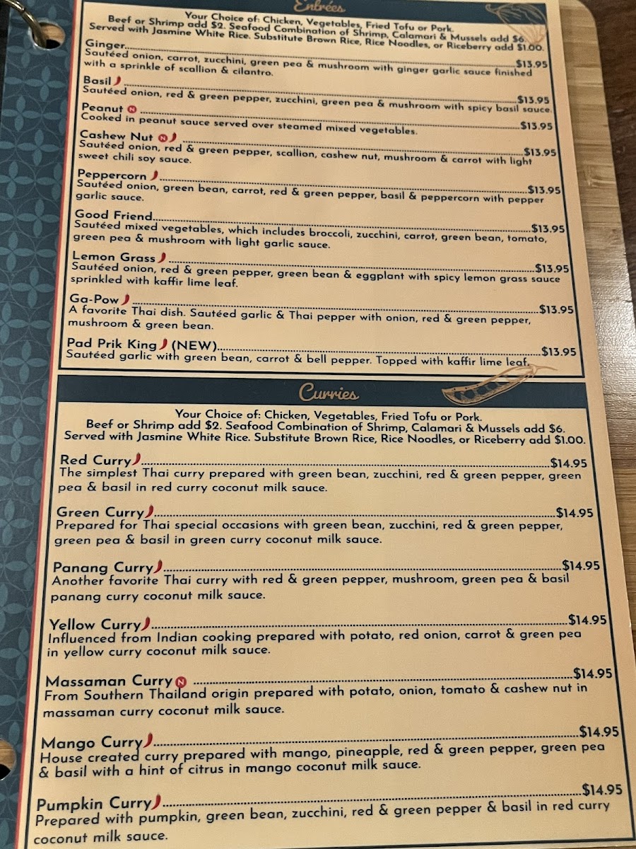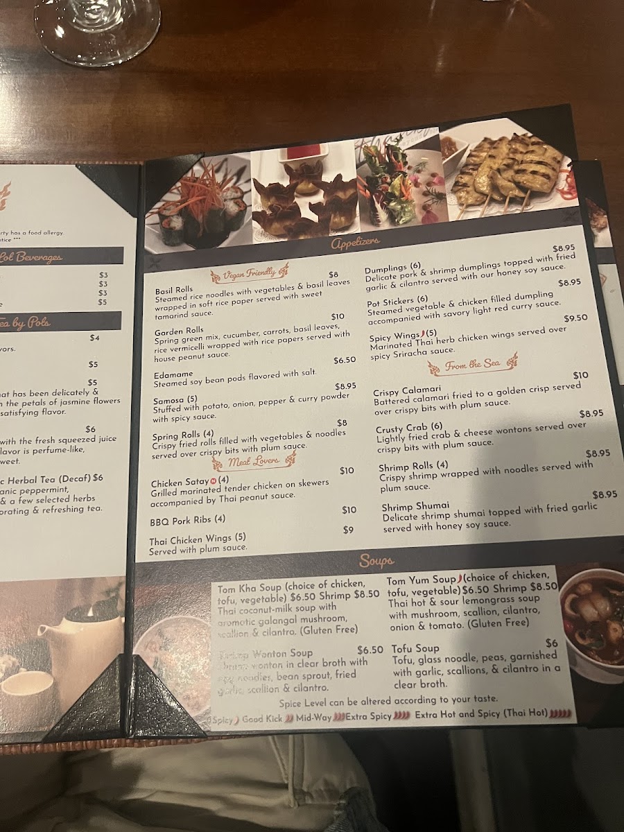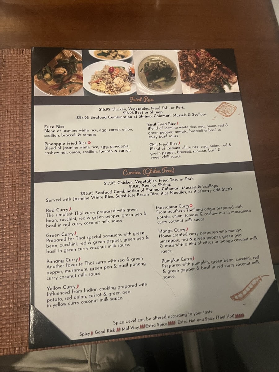 Steamed vegetable & chicken filled dumpling accompanied with savory light red curry sauce.