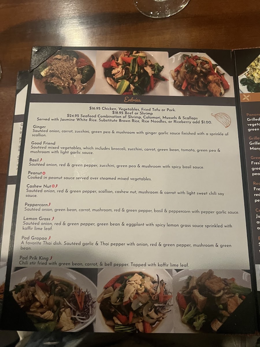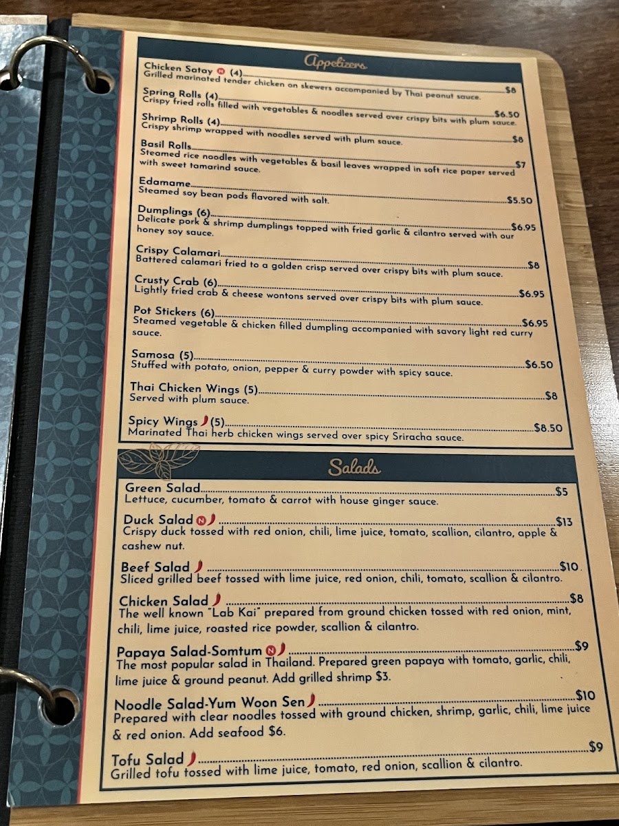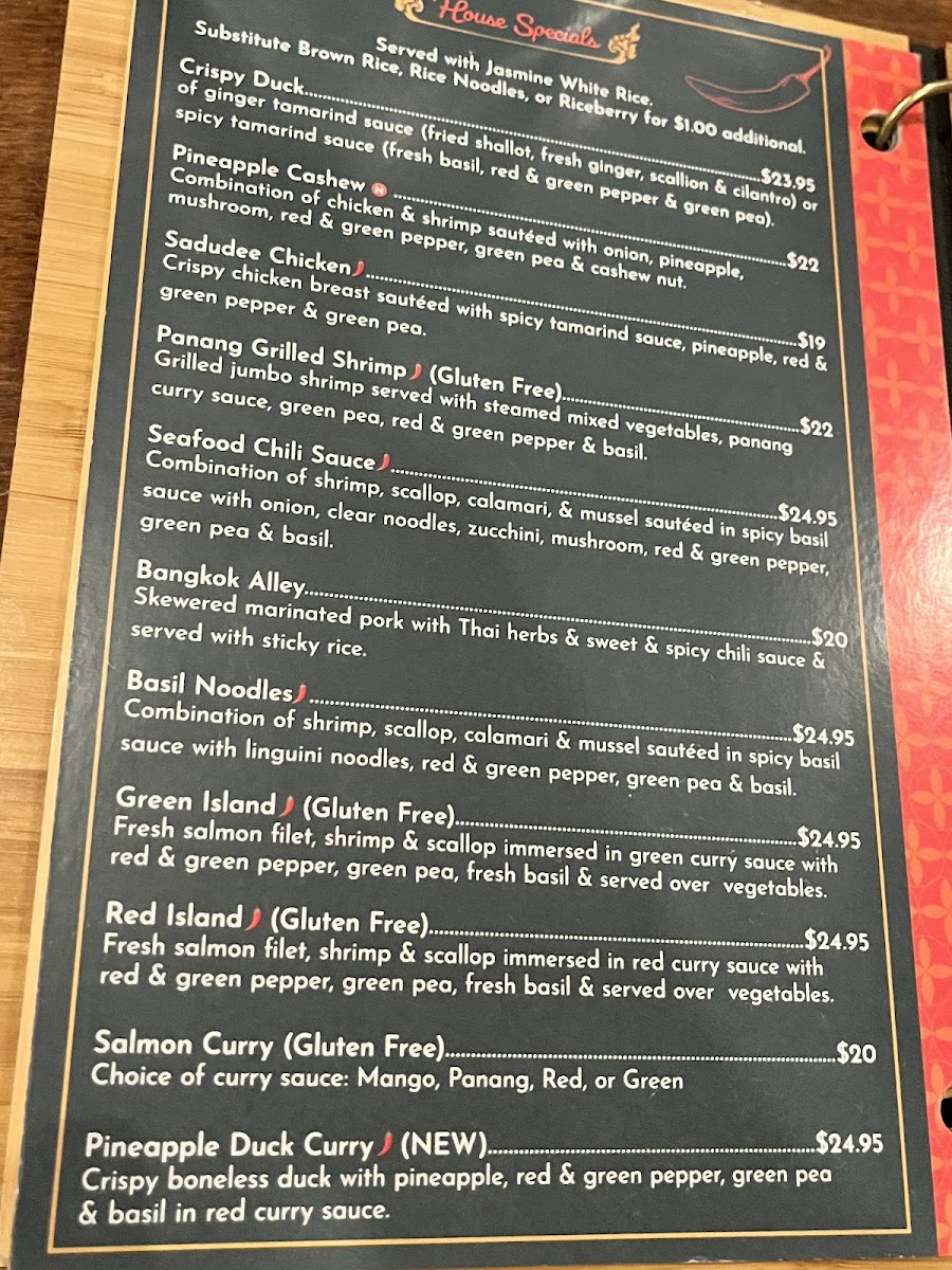 Marinated Thai herb chicken wings served over spicy Sriracha sauce.